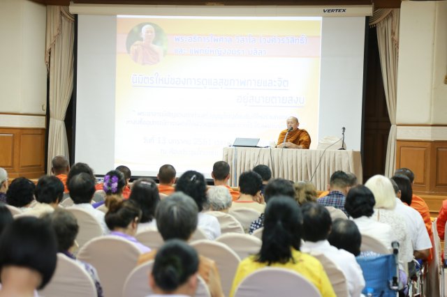 เมื่อวันที่ ๑๓ มกราคม ๒๕๖๑ คณะเจ้าหน้าที่โรงพยาบาลระนอง จิตอาสาและประชาชน ร่วมฟังธรรม “นิมิตใหม่ของการดูแลสุขภาพกายและจิตอยู่สบายตายสงบ” โดยพระอาจารย์ไพศาล วิสาโล และร่วมทอดผ้าป่า หางบซื้ออุปกรณ์การแพทย์ให้ผู้ป่วยระยะท้ายแต่ยากไร้โรงพยาบาลระนอง ณ ห้องประชุมโกมาซุมโรงพยาบาลระนอง มีผู้เข้าร่วมฟังกว่า ๑๐๐ คน