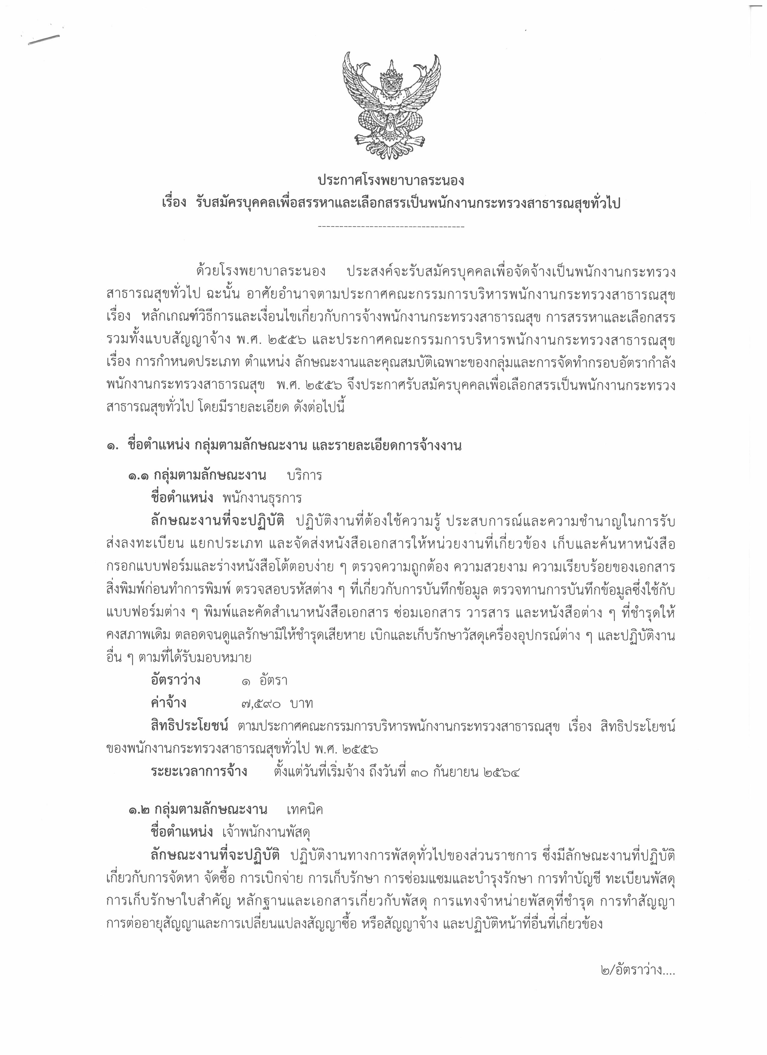 ตั้งแต่วันที่ 27 มีนาคม - 2 เมษายน 2560 วันและเวลาราชการ ณ กลุ่มงานทรัพยากรบุคคล โรงพยาบาลระนอง